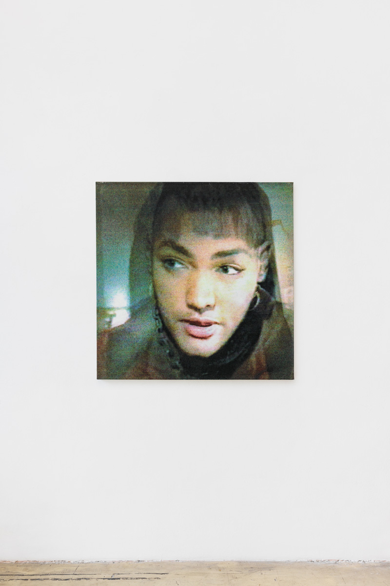 In den zwei gezeigten Arbeiten von Matthias Groebel kann man doppelte Zeitbilder sehen. Sie stammen aus den frühen 1990er Jahren und zeigen zum einen eine damals im Entstehen begriffene Medienlandschaft, die des frühen Privatfernsehens mit seiner Kapitalisierung großer Bereiche des täglichen Lebens in der Verwendung in Game Shows und Reality TV. Aus dem Fernseher rührt die flaue Farbigkeit, eingefangen durch eine vom Künstler erfundene Malmaschine, anonymisiert nicht nur weil niemand mehr weiss, wer die abgebildeten Menschen sind, deren Präsenz dennoch eine individuelle Existenz suggeriert, zum anderen weil noch nicht einmal das Tun des Künstlers sie wieder mit einer Erzählung ausstattet. Bloss eine Maschine, die Zeile für Zeile den vom Künstler gewählten Farbauftrag anlegt.