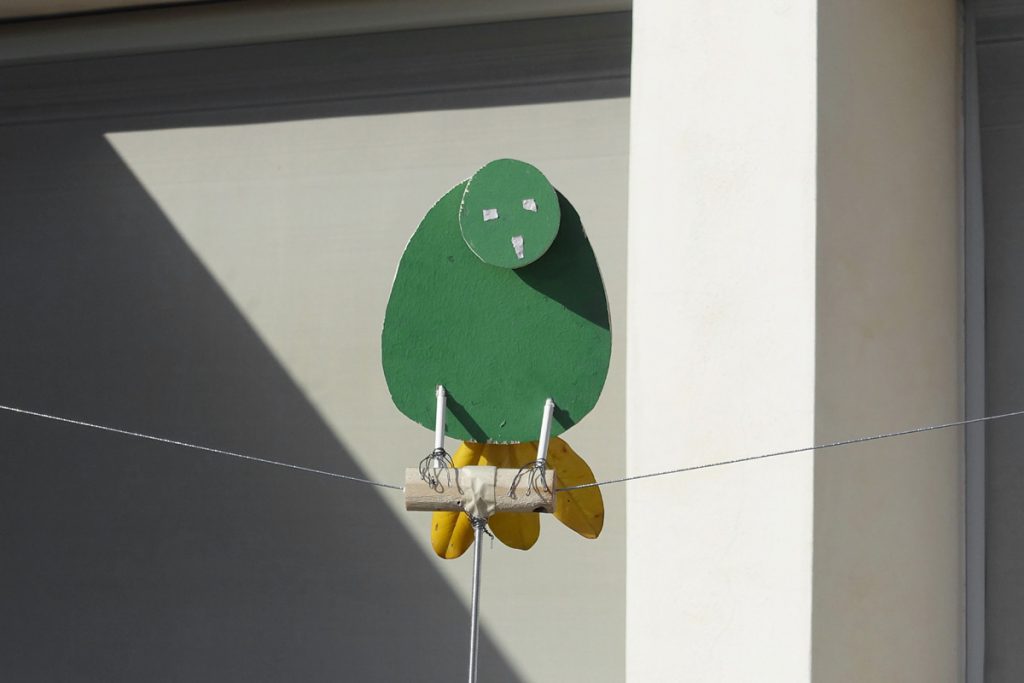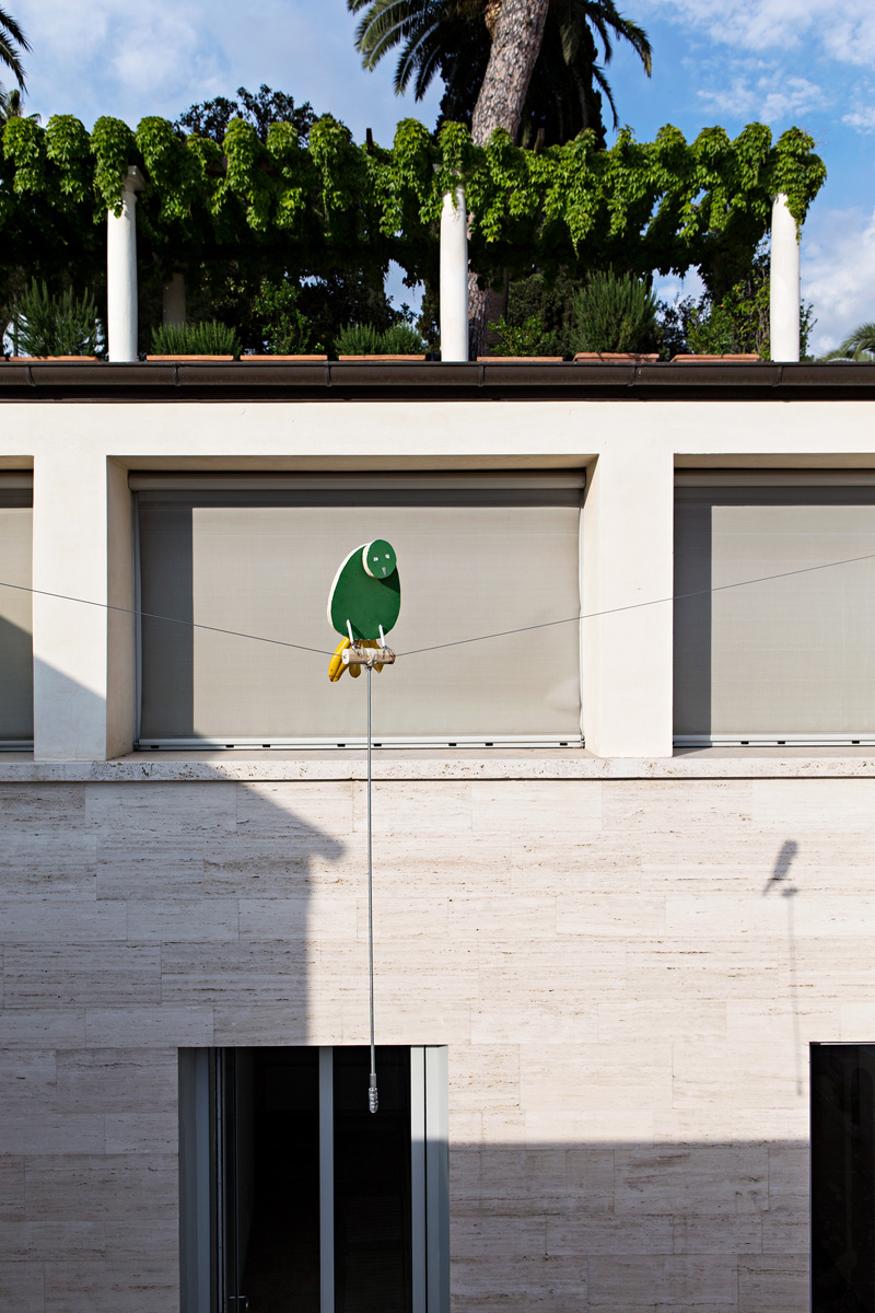 A study in equilibrium, depicting a bird and spanning court spaces