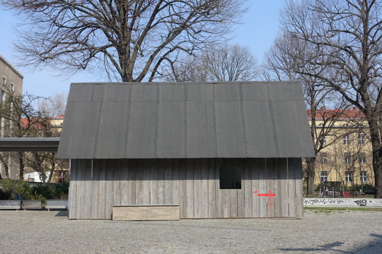 As part of an invitation to the magazine Starship, Ariane Mueller and Martin Ebner conceived the re-design of the Volksbühne pavillon, an urban one level 50ies structure formerly used as the ticket office of Volksbühne and later used as a gallery space, as a barn, which should also be usable as a space craft. The conception discussed that this barn came from the former barn-district (Scheunenviertel) where the Volksbühne is situated. After a time travel of app. 20 years, which also marked the time in which the Berlin based magazine Starship existed at that time, it had landed again at its former site, Berlin Mitte. In the barn were artefacts from the year 1998 – the time when Starship had started.