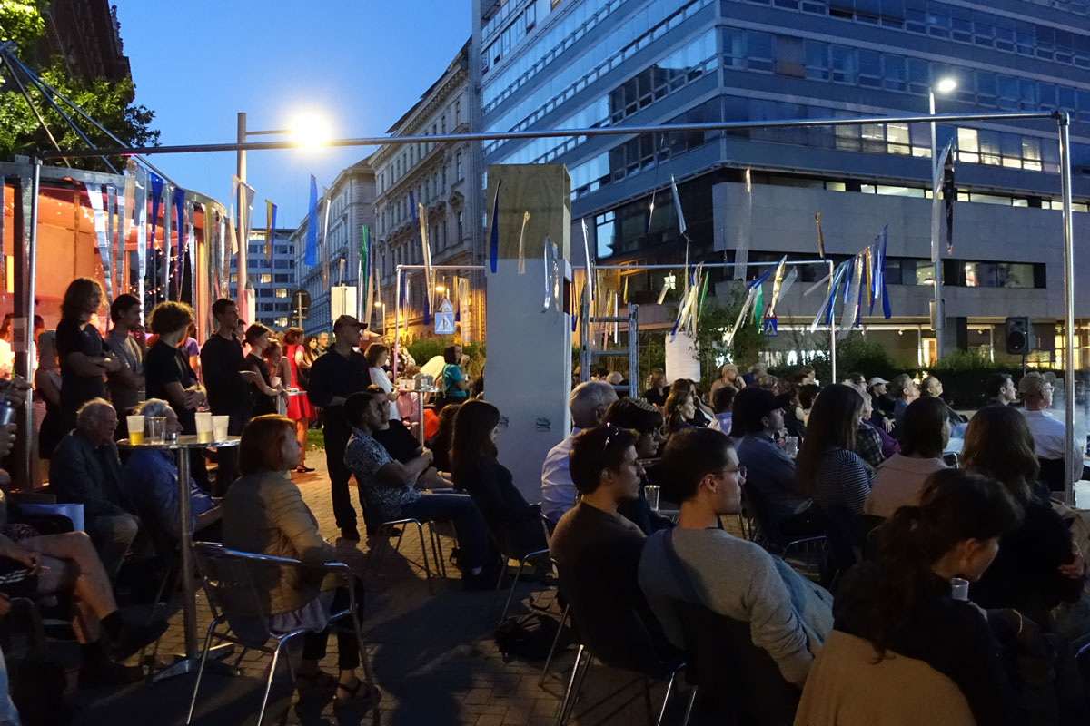 For the summer programme of the Viennese Secession Martin Ebner was invited to conceive a spatial intervention that could foster the different artistic presentations during the summer programme (screenings, readings, perfomance, concerts).